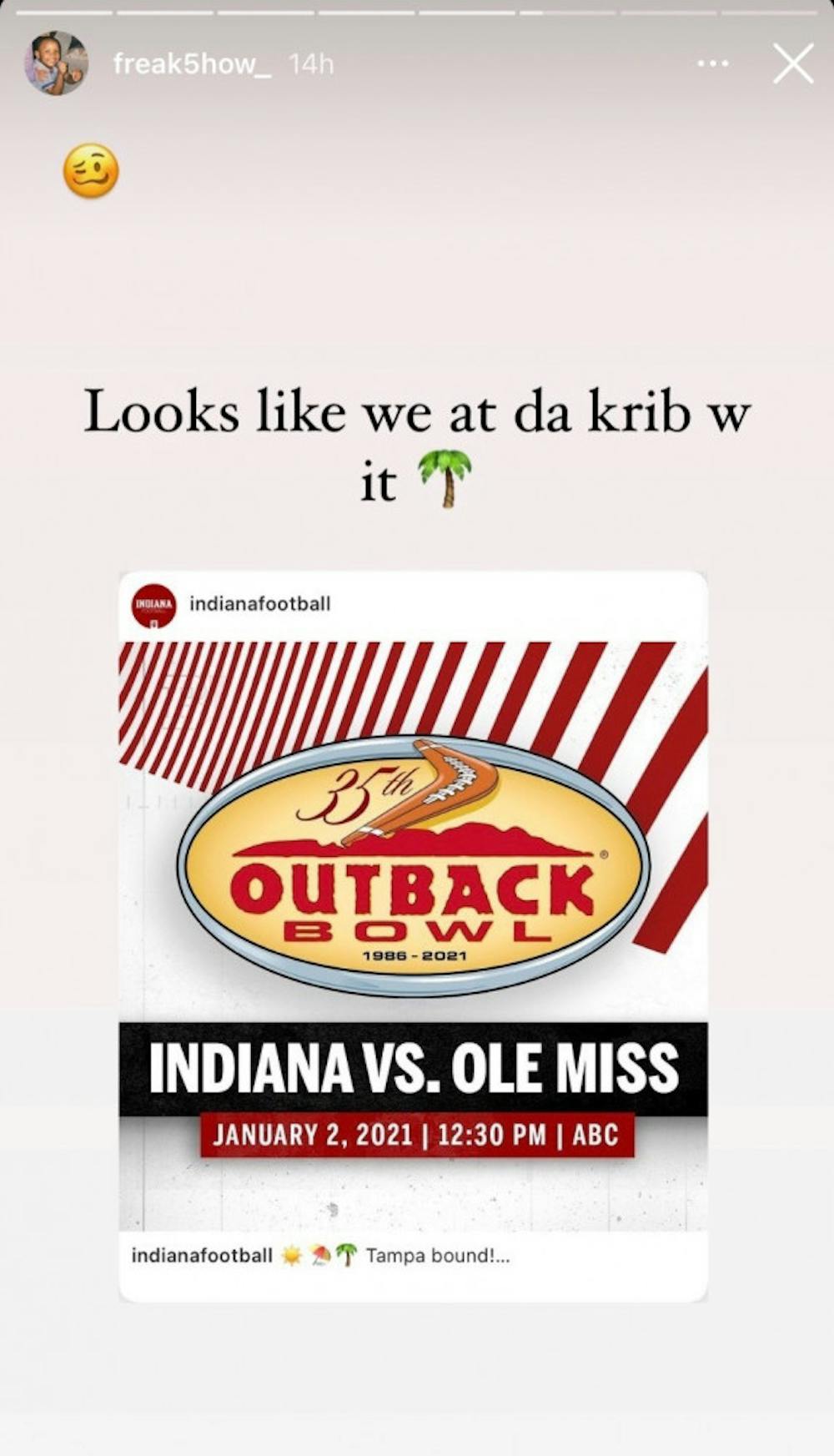 Allen told media there will eventually be "a time and a place" to address it, but remained focused on the positives that will come from Indiana's second consecutive bowl berth. Those include playing a "really good football team" in the Rebels, the opportunity to take the next step in the transformation of Indiana's program, and what might loom the largest — the location of the Outback Bowl itself — which will signify a homecoming for Allen, his son Thomas, and nine other Hoosiers from the greater Tampa area.