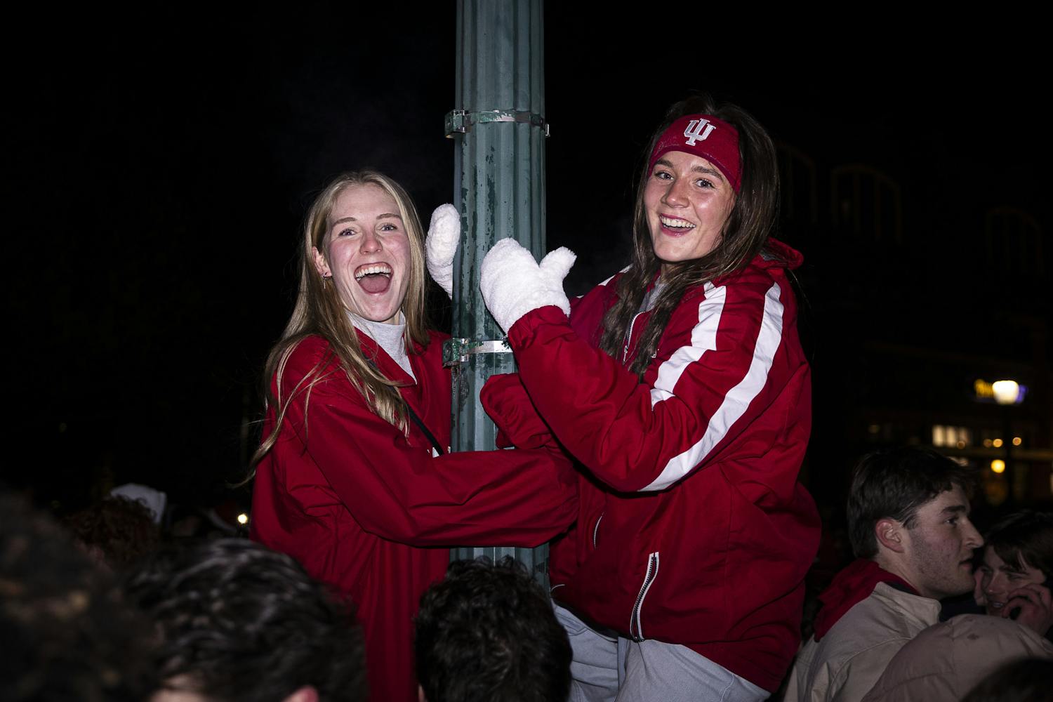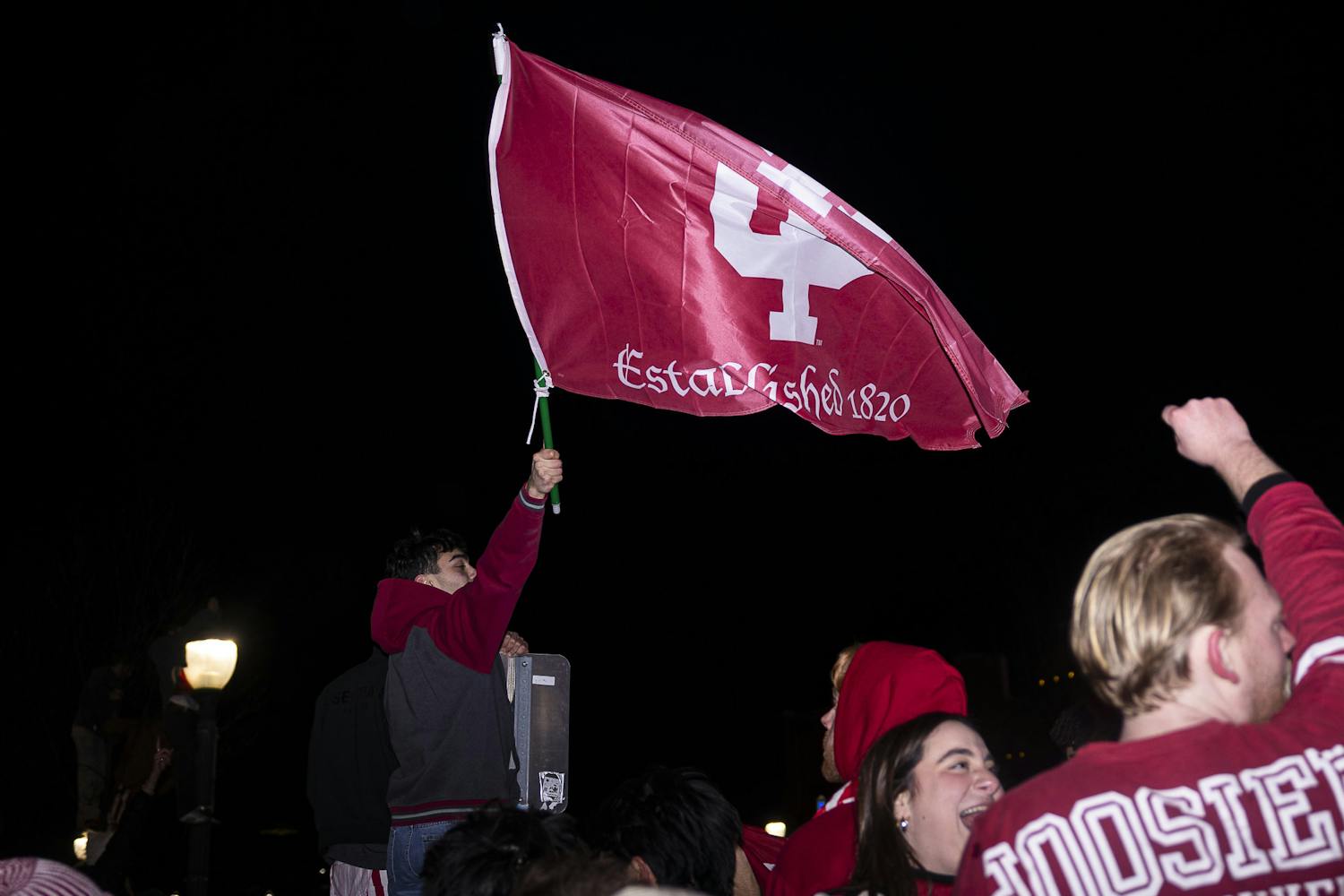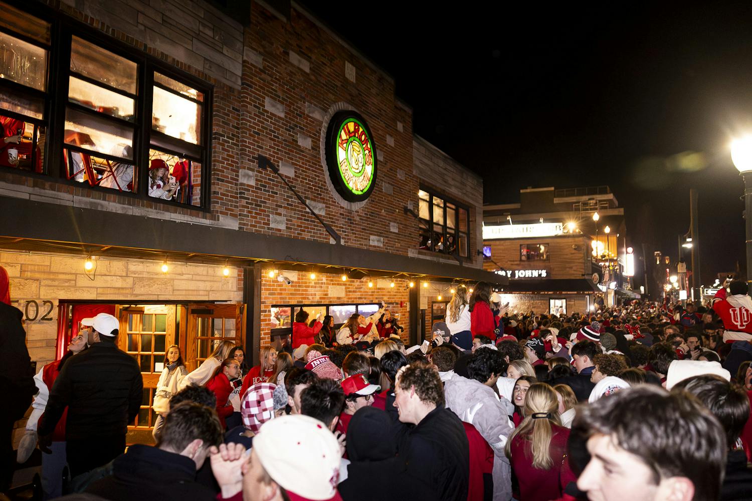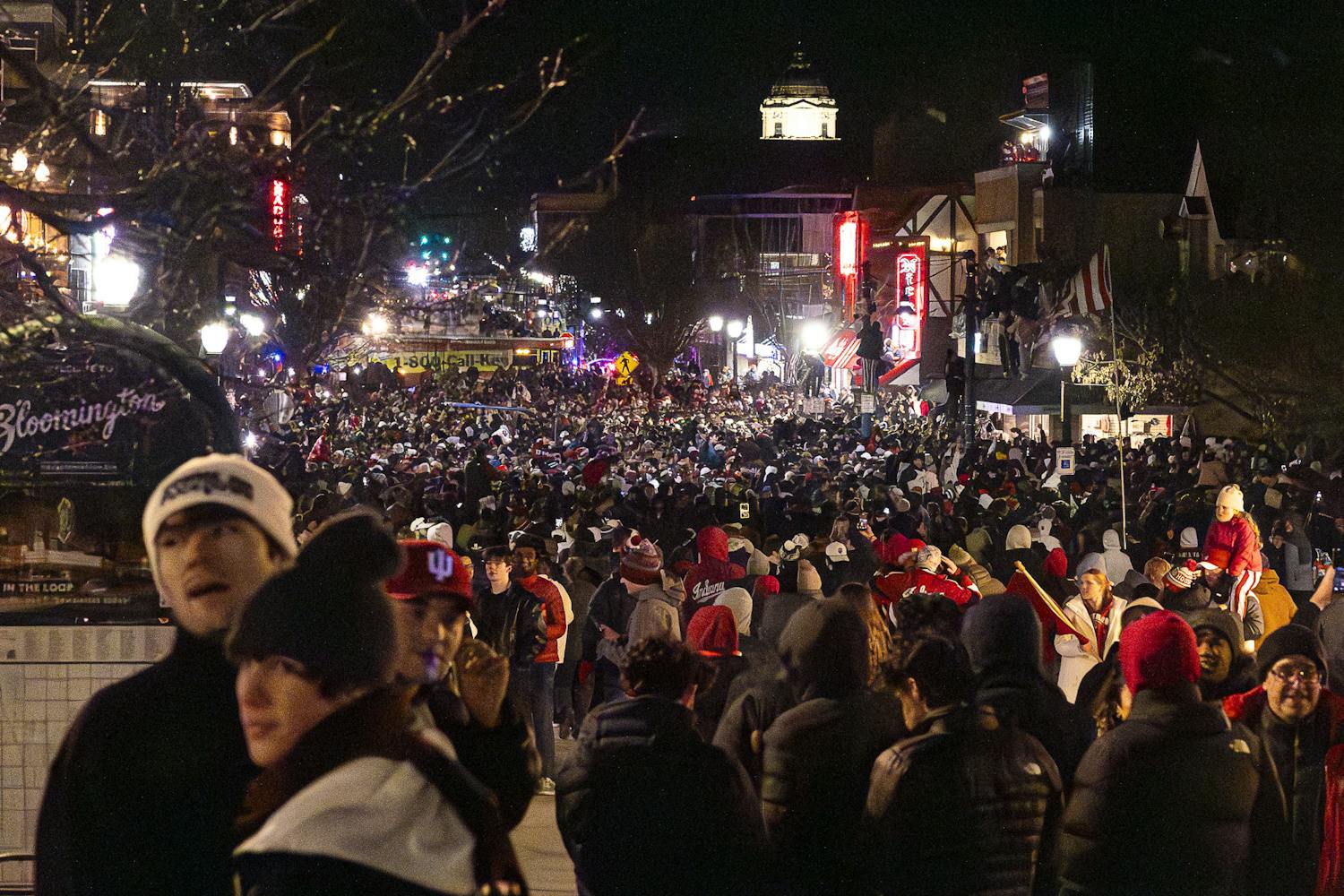 Indiana beat Miami 27-21 in the College Football Playoff National Championship Game on Monday night in Miami. In Bloomington, fans watched the game at Simon Skjodt Assembly Hall and celebrated on Kirkwood Avenue. Hoosier Network photographers Brady Owen and Jake Weinberg were on the scene capturing the celebration.
