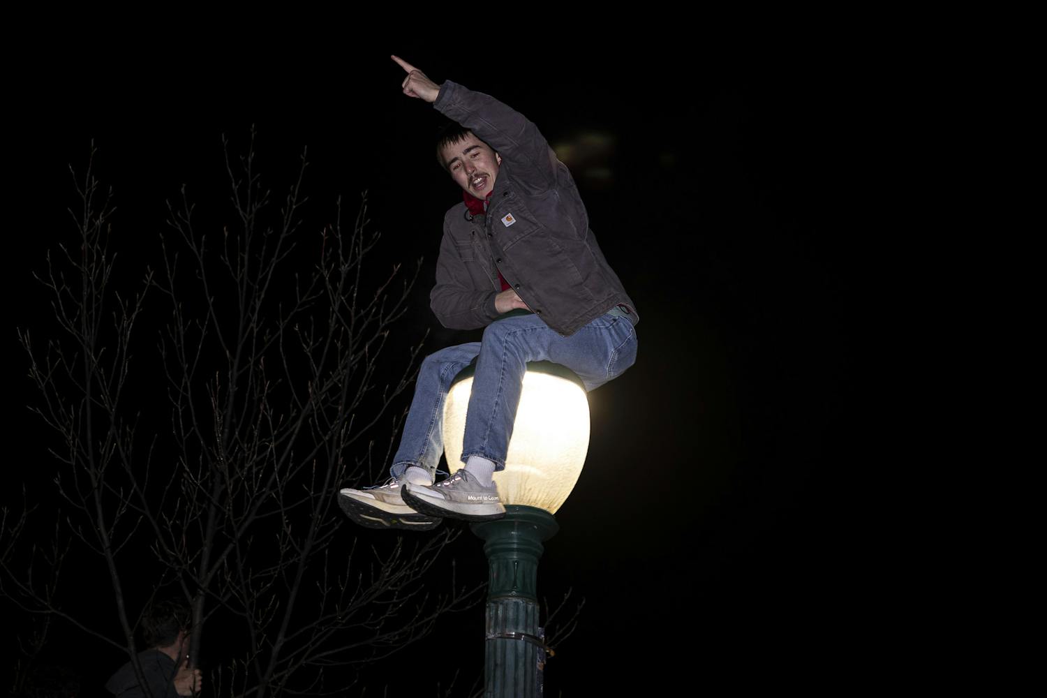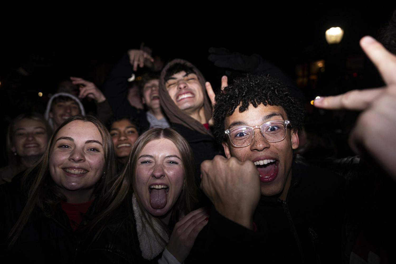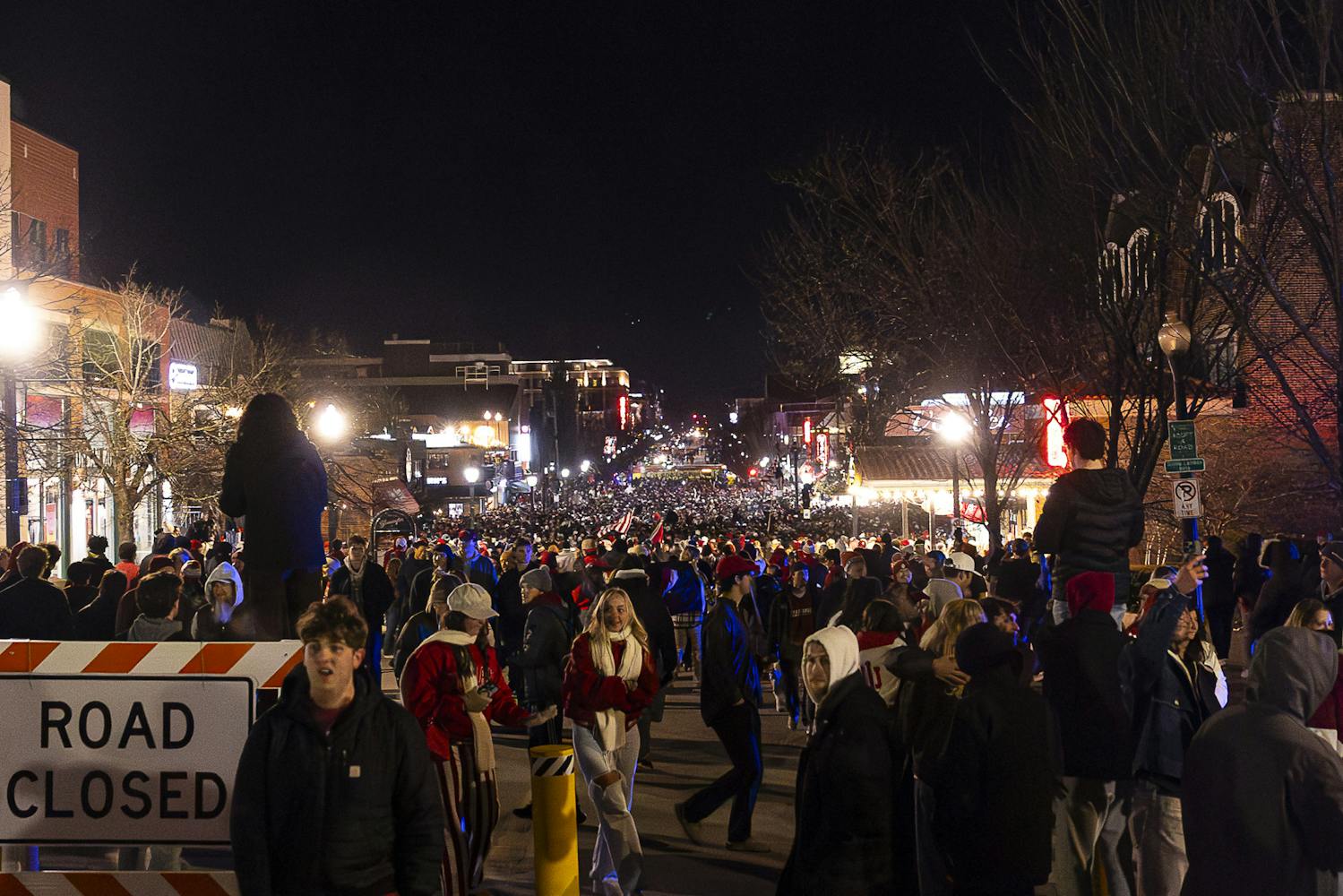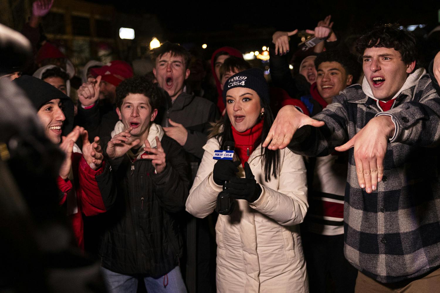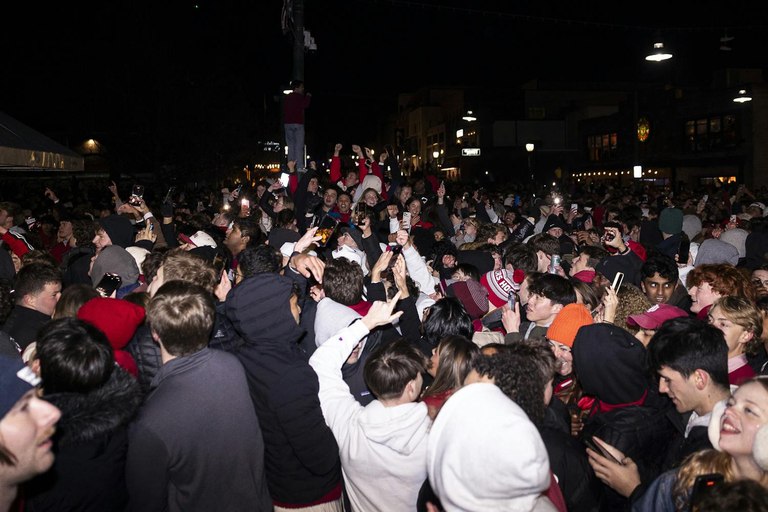 Indiana beat Miami 27-21 in the College Football Playoff National Championship Game on Monday night in Miami. In Bloomington, fans watched the game at Simon Skjodt Assembly Hall and celebrated on Kirkwood Avenue. Hoosier Network photographers Brady Owen and Jake Weinberg were on the scene capturing the celebration.