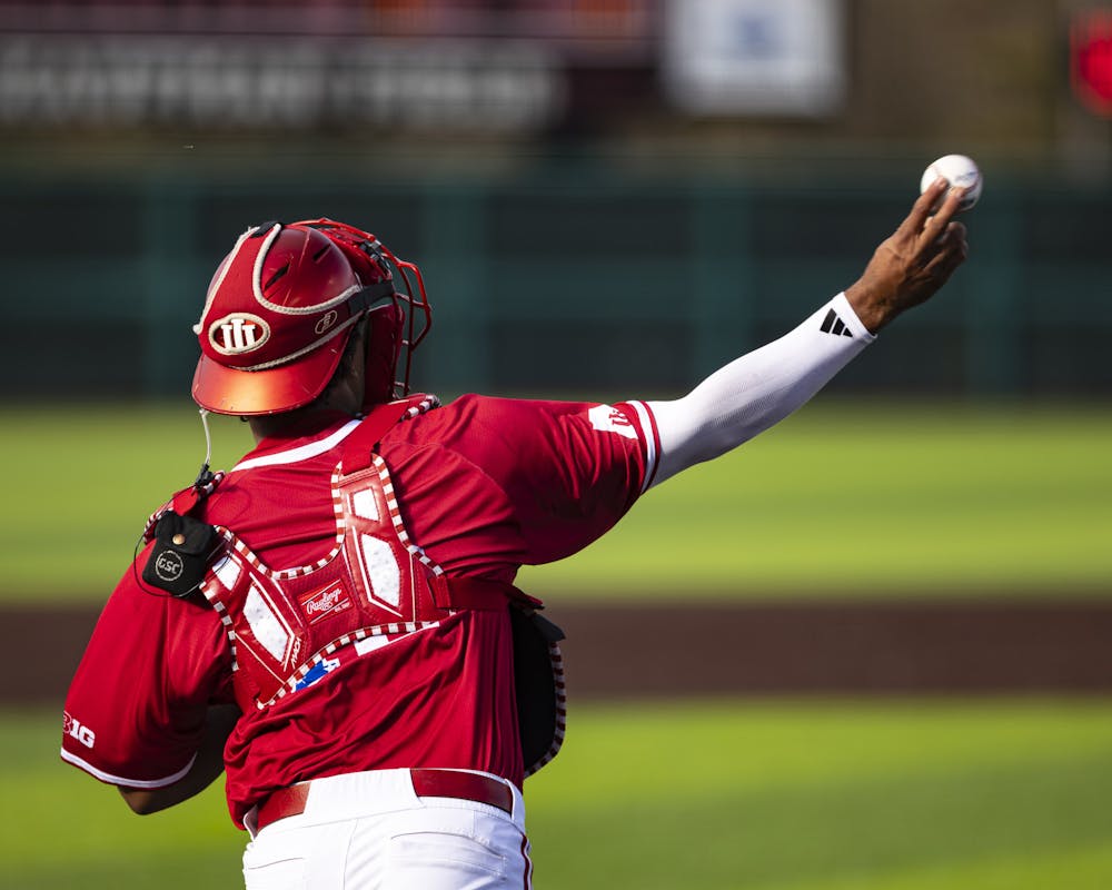 Brayden Ricketts throws the ball during Indiana's loss to Indiana State on March 24, 2026. (HN photo/Brady Owen)