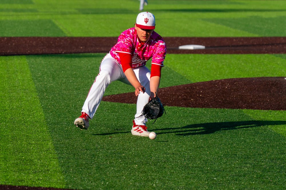 Ivan Mastalski fields a ground ball during Indiana's win over Ball State on April 7, 2026. (HN photo/J.T. Frenzel)