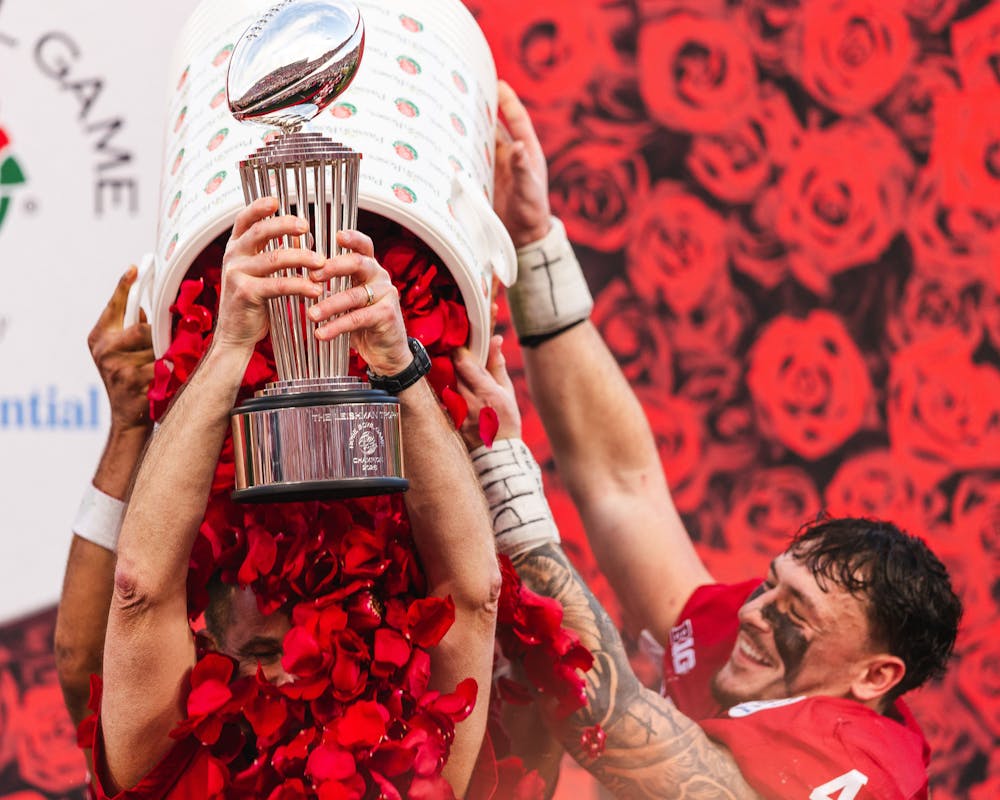 January 1Fernando Mendoza lifts the Rose Bowl Trophy after Indiana's win over Alabama in the Rose Bowl on Jan. 1, 2026. (HN photo/Kallan Graybill)
